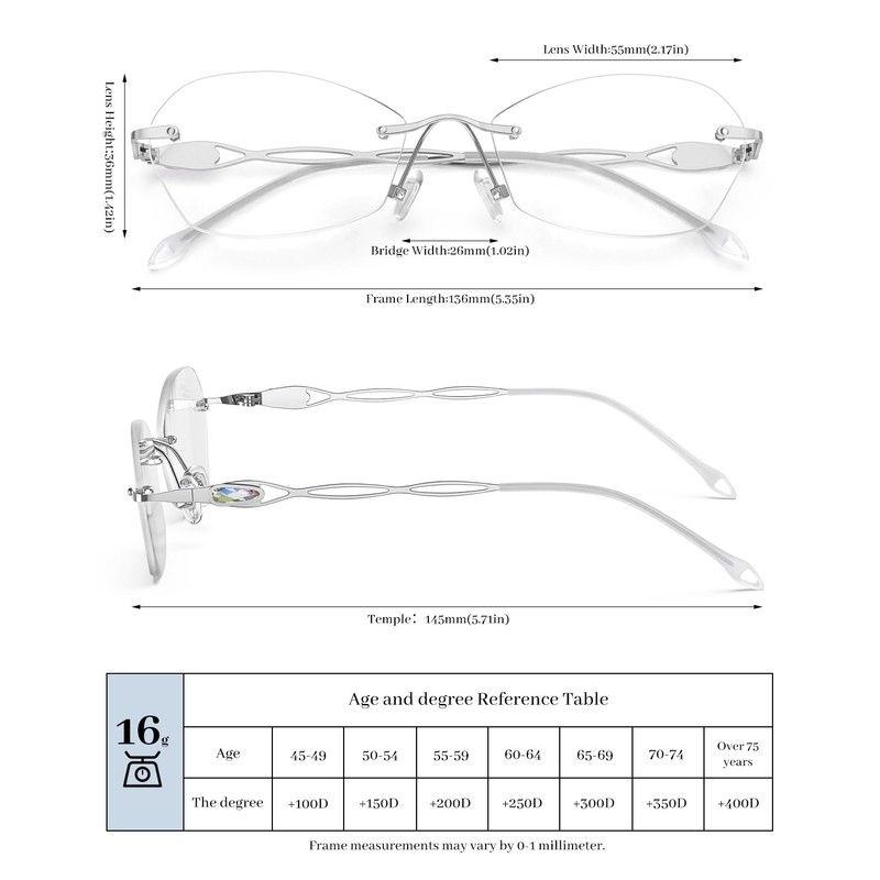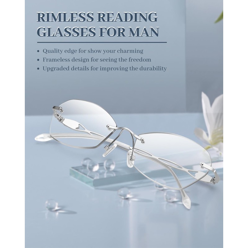 - 6 TRAND-PROOF COLORS FOR EVERY OCCASION : Choose from 6 curated hues (Metallic Rose Gold, Midnight Sapphire & more) more color options than 92% of competitors. Slim rimless frames reading glasses for women seamlessly transition from boardroom meetings to book clubs without clashing with outfits.