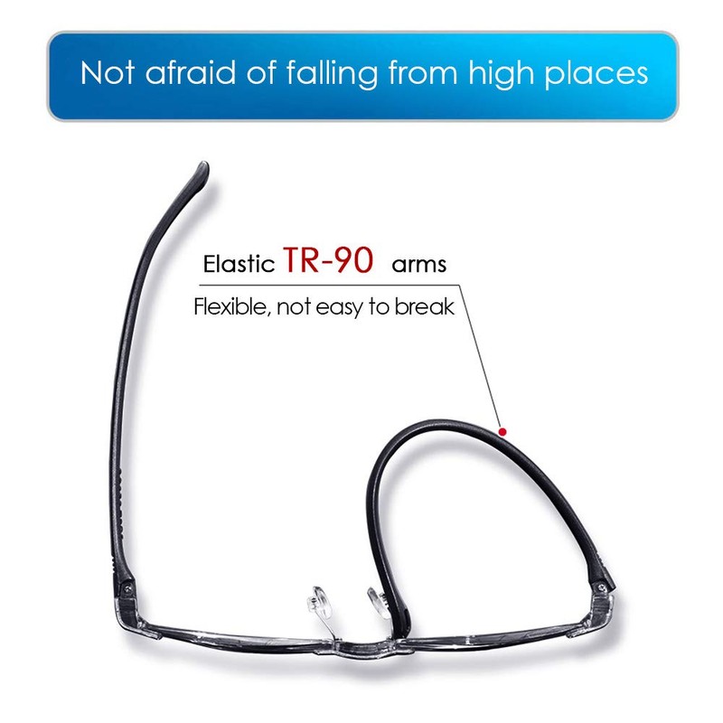 - Elastic TR-90 temples, flexible and not easy to break, not afraid of falling from high places, resisting pressure and falling.