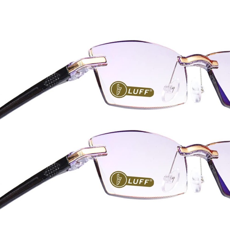 LUFF Reading Glasses Company Home Lightweight Comfortable Readers Value 2 Pack Frameless Diamond Trimming Mens(1.0X)