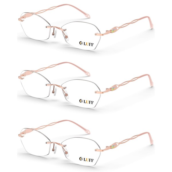 LUFF Rimless Reading Glasses for Women Blue Light Blocking Lightweight Metal ...