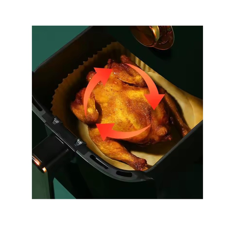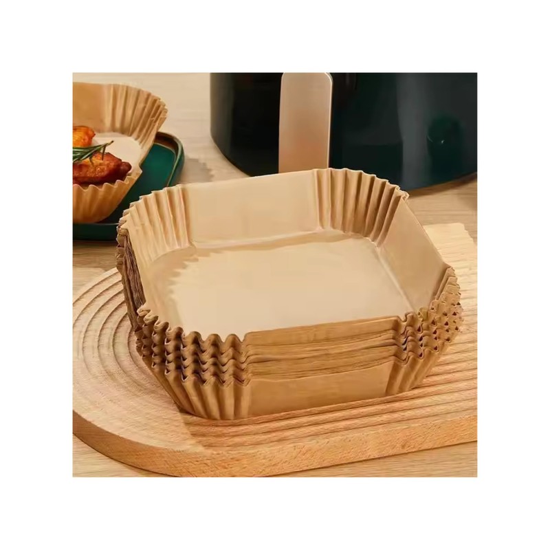Luftfritteuse-Papier, 20 cm x 20 cm x 4,5 cm, Luftfritteuseformen, Airfryer-Papier für gesundes Kochen, Papiermaterial, quadratische Form, kompakte Größe.