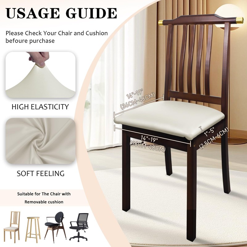 - 【Measure Before Buying】Lufyzora's dining chair seat covers waterproof are made of flexible leather fabric. The optimal size range for dining room chair seat covers is: Length: 13.5"~19" Width: 13.5"~19" Thickness: 1"~3". Please refer to the size on our picture before purchasing!