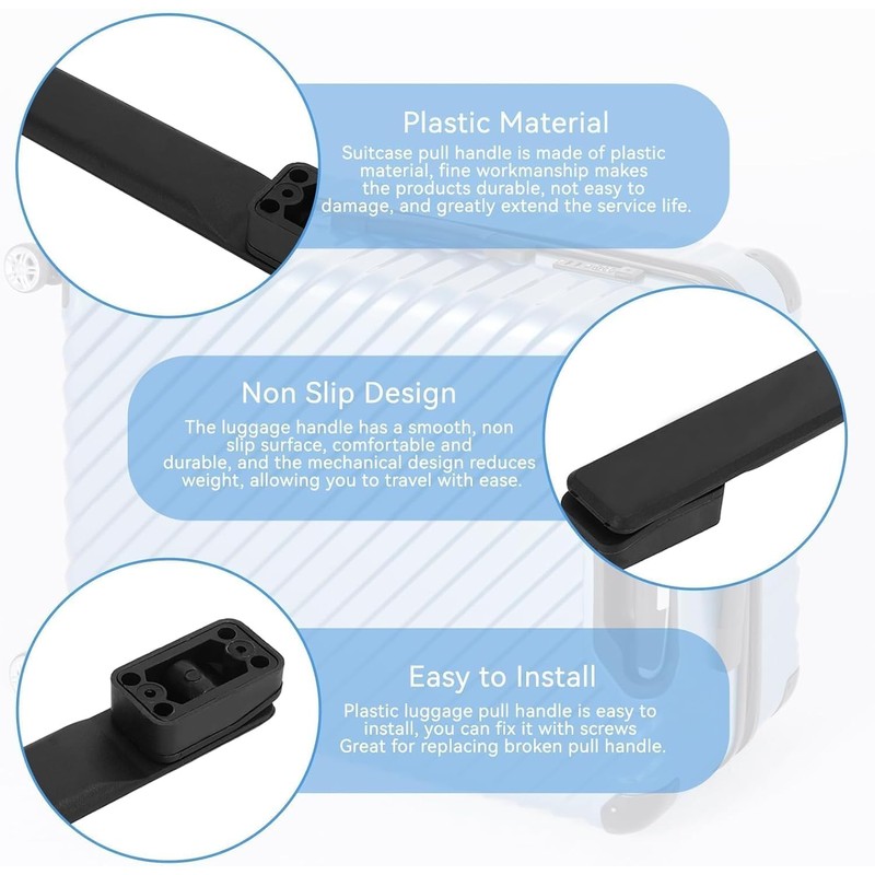 - Premium Material: Luggage replacement handle is made of selected plastic material, comfortable, wear-resistant, durable and strong enough to carry large amount of weight and can carry 30-45 kg of weight.
