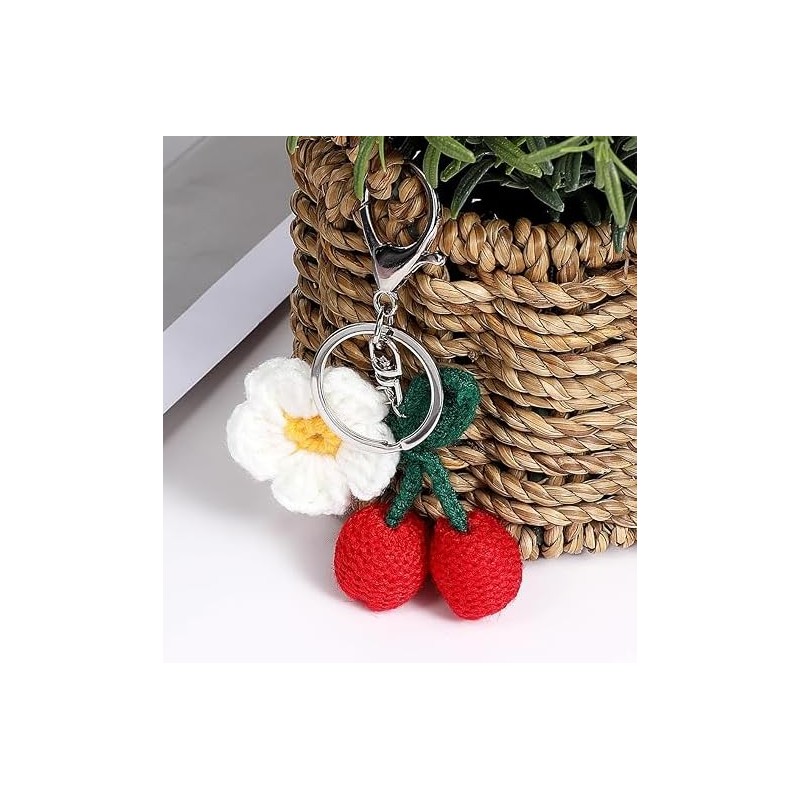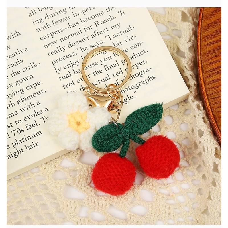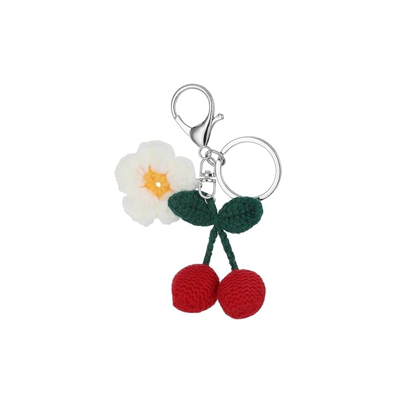 - Cute Flower Accent: Along with the red cherry, there is a cute flower element attached to the keychain. The flower adds a charming and feminine touch, enhancing the overall cuteness of the accessory and making it a great addition to any bag or set of keys