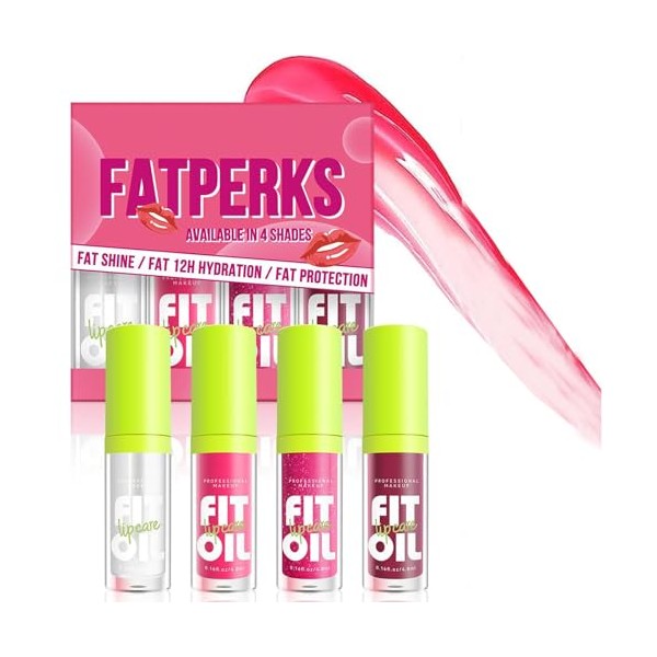 LUHI 4 Colors Esmalte de labios con aceite de , lip oil,brillo labial,maquillaje gloss,set de gloss para mujer,juego de de labios hidratante,Nutricin