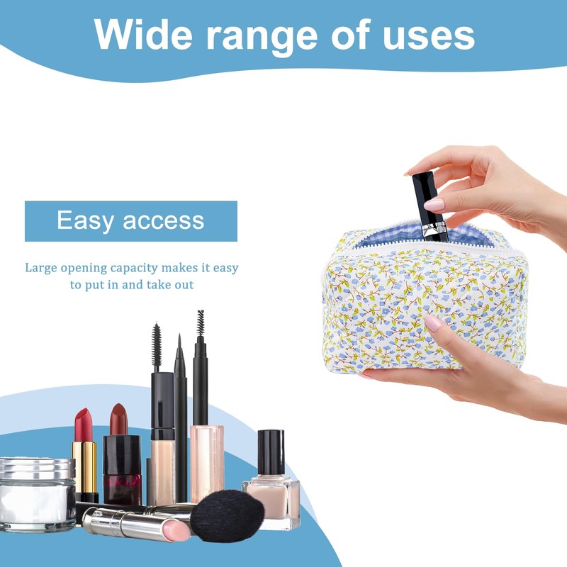 - The surface of the pink cosmetic bag is filled with cotton, soft and comfortable hand feel texture. The interior offers enough space for your various cosmetics.