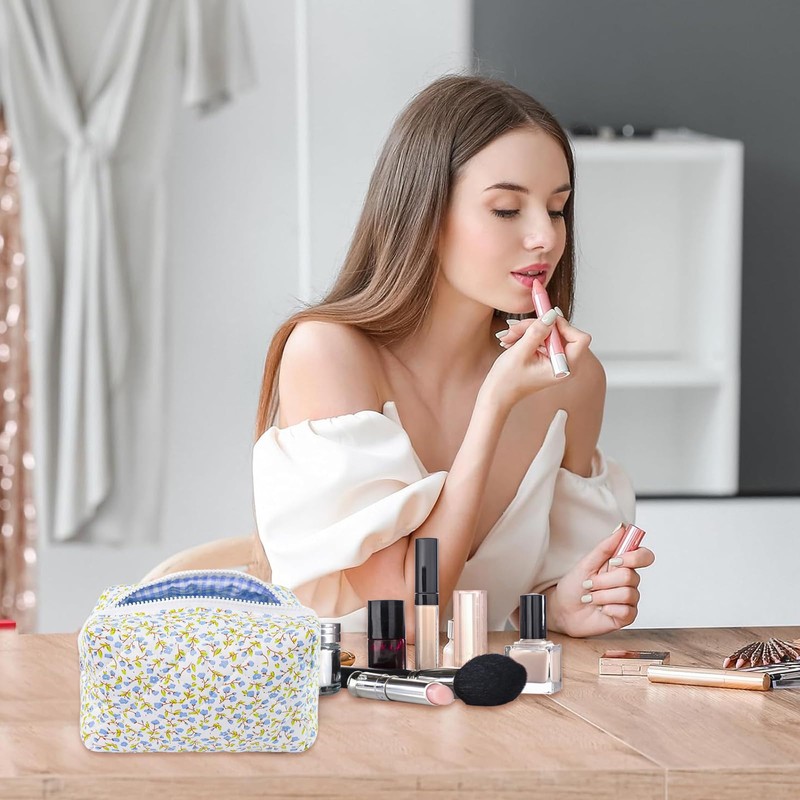 LUHOCIY Cosmetic Bag Flowers, Quilted Cosmetic Bag, Make Up Bag, Made of Soft Cotton Material with Zip for Holding Various Make-Up Utensils (Pink), hhls, Minimalist/Simple/Popular Style