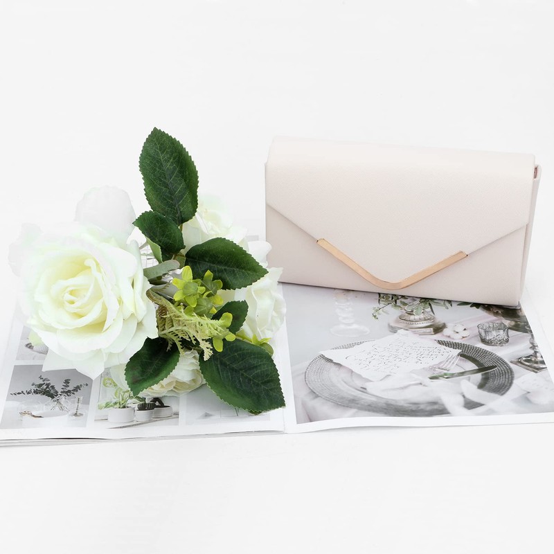 LUI SUI Women Faux Leather Envelope Handbag Bridal Wedding Evening Clutch Party Purse, cream, Classic