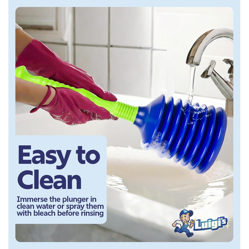 Luigi's Sink Plunger Kitchen - Sink Plunger Bathroom - Drain Bathtub or Shower - Small and Powerful Clog Remover - Commercial Style "Plumbers Plungers" with Large Bellows