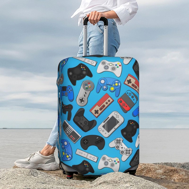 Lukbfall Game Joystick Background Luggage Suitcase Covers Elastic Washable Video Game Theme Luggage Protector Travel Suitcase Protective Cover For Kid And Adult, M (Fit 22-24 Inch Luggage)
