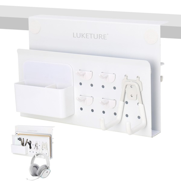 LUKETURE Desk Side Storage, No Drill Under Desk Laptop Mount, Steel Hanging Desk Organizer, with Pegboard Accessories, Clamp on Laptop Holder for Office and Home, Fits Flat Edge Desks 0.4" to 2.8"