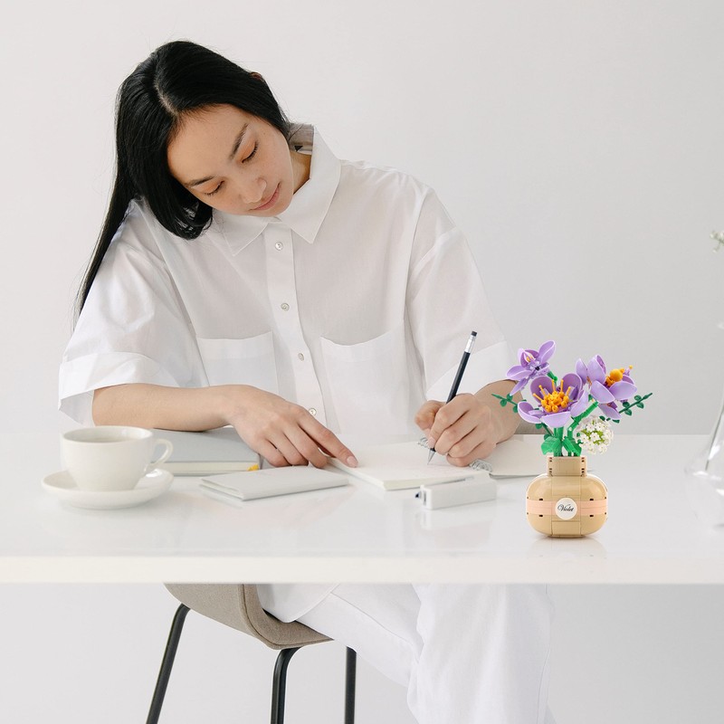 LUKHANG Violets Flower Building Blocks Set - DIY Aromatherapy Bouquet and Bon...