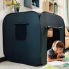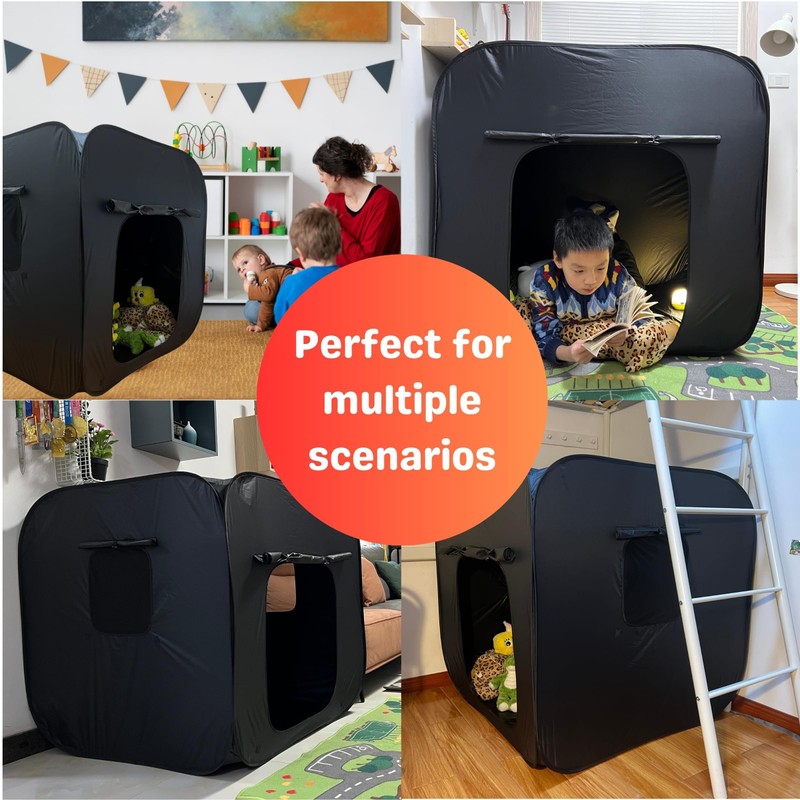 - 【Premium Blackout Effect with PU-Coated Fabric】 — Crafted from top-quality light-blocking materials, our sensory tent incorporates a special blackout PU coating for complete shading. Even when exposed to flashlight or mobile phone light, no light penetrates the surface. Creating a tranquil and dark environment, it effectively soothes children, even in bright daylight or illuminated surroundings.