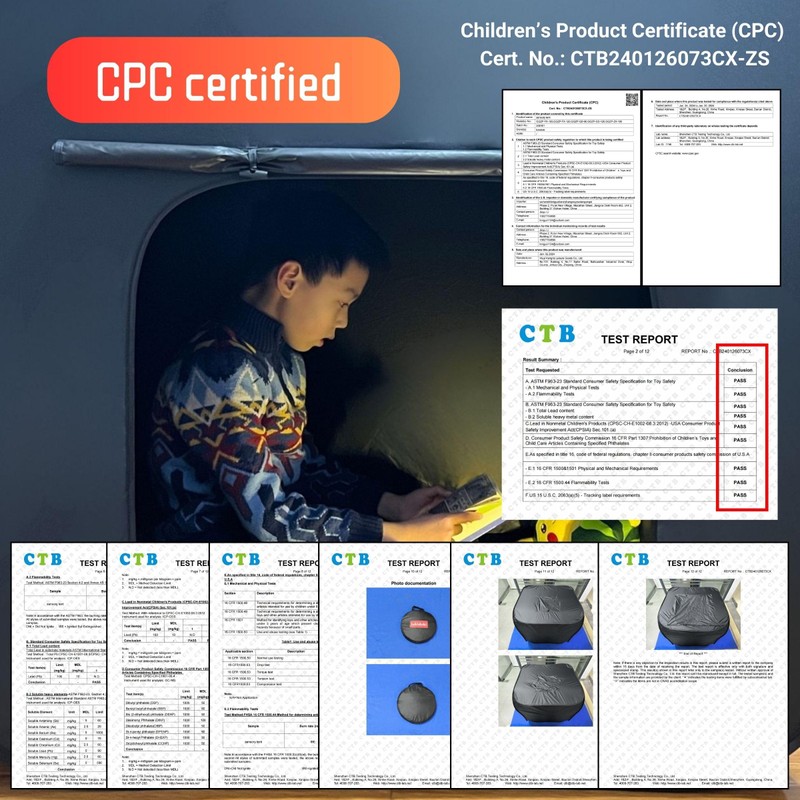 - 【Certified Safety for Your Child】 — Our sensory tent is CPC certified (Children's Product Certificate), ensuring the highest standards of safety. Ideal for children with special needs, the tent offers a secure retreat for those easily overstimulated. Crafted to provide a comforting, dark sanctuary, it aids in managing sensory challenges like SPD, anxiety, autism, and attention-related issues.