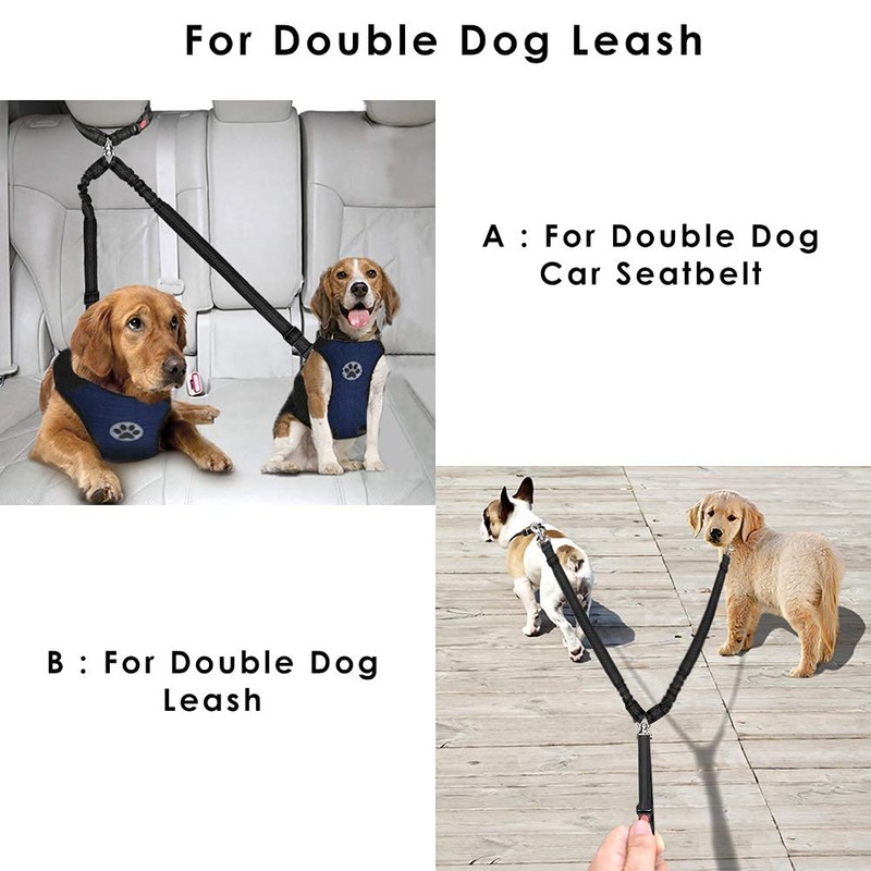 - 【 2 Usage Seatbelt / Leash 】--- It’s not only a pet seatbelt but also a general double leash. Whether it's walking or driving, it gives the dog the safest protection and easy to control 2 dogs.