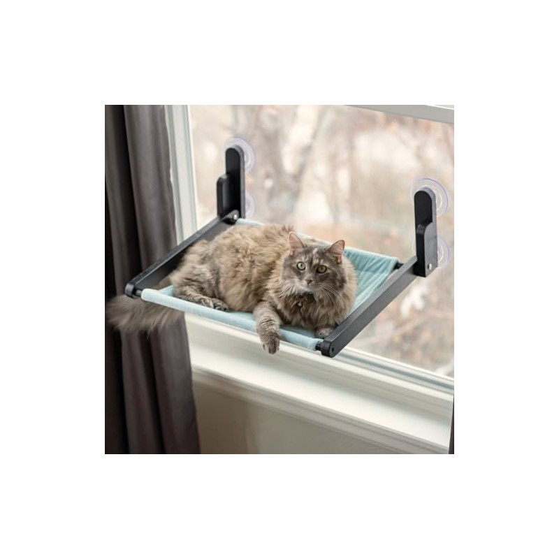 - Space Saving Cat Window Perch: Our cat window perch for indoor cats is foldable and space saving. It attaches securely to the window with strong suction cups, leaving more room for you and your pet.