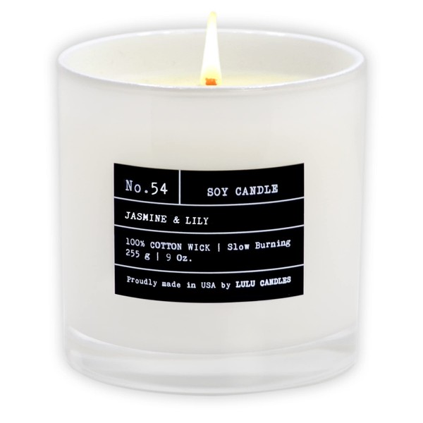 Lulu Candles | Jasmine & Lily | Highly Scented Candles for Home - Soy Blend Jar Candle with 100% Cotton Wick - Slow Burning (9 Oz.)