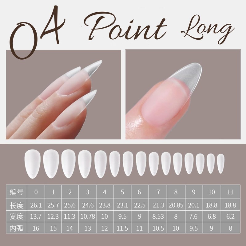 - Short x Ballerina Nail Tip: False nail with shorter design. Natural finish fits adult fingertips