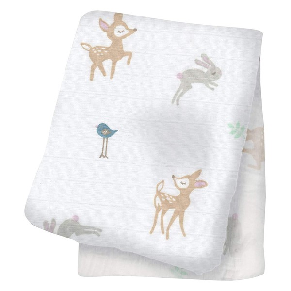 Lulujo Baby 100% Cotton Muslin Swaddle Blanket, 47 x 47-Inches, Little Fawns