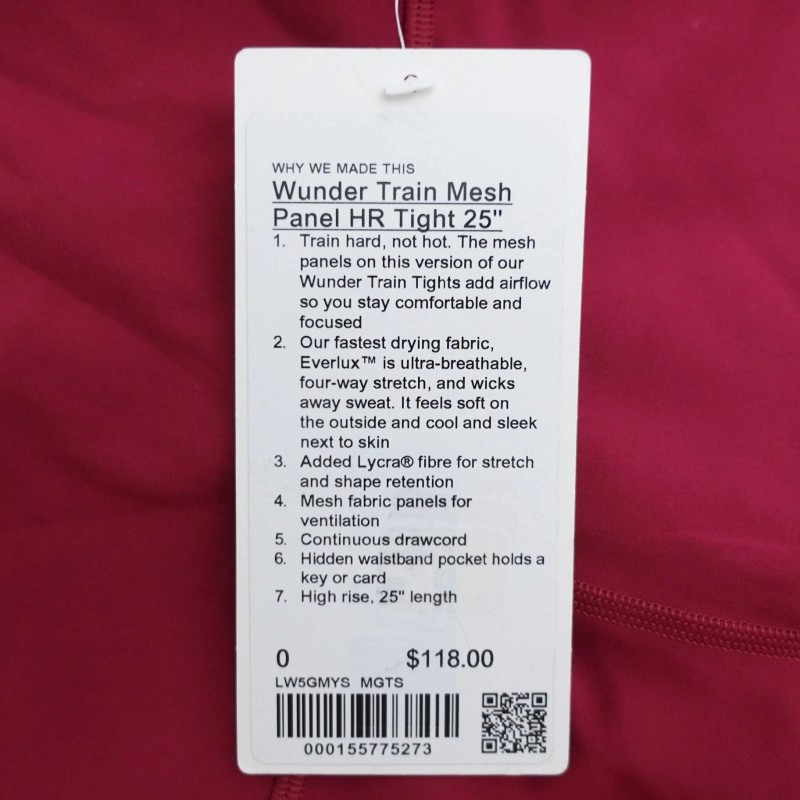 Lululemon New Lululemon Leggings Size 0 Wunder Train Mesh Panel HR 25" MGTS Magenta Smoke