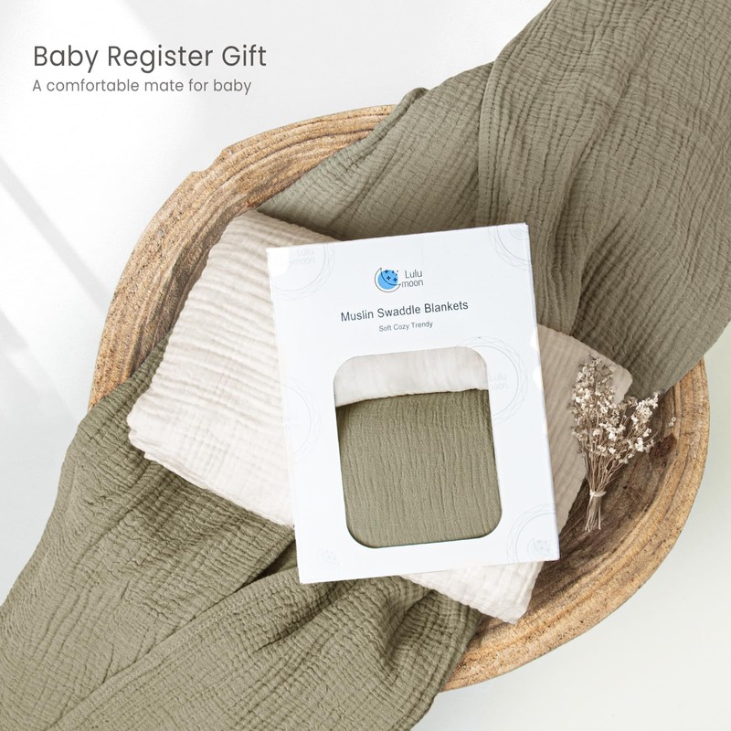 lulumoon Muselina Manta Swaddle Bebé -Manta de algodón Suave para bebé Manta de recepción Neutral 2Pack(Oliva)