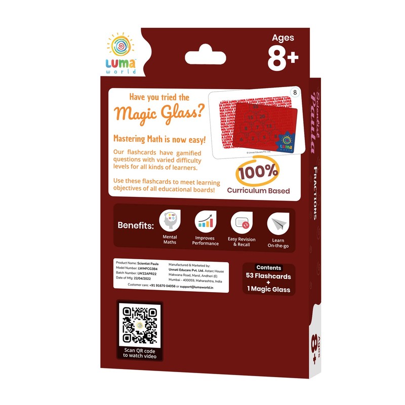 LUMA WORLD ADD LIFE TO LEARNING Luma World Scientist Paula Educational Math Flash Cards With A Spy Magic Glass For Ages 8+ Years To Learn Grade 3 Fractions, Set Of 50 Cards For Mental Maths