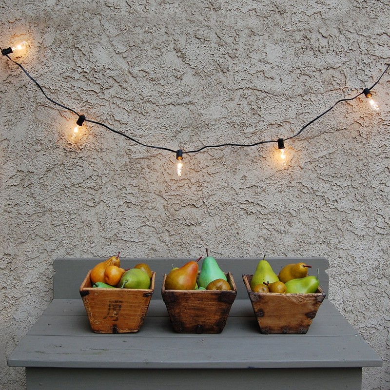 • String Lights: C7, Incandescent 7-Watt Bulbs. No more than 3 string light cords should be connected to one power source. Bulb Light: Clear