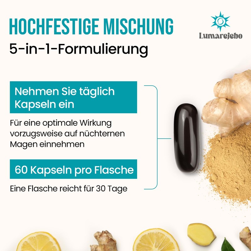 - 5 in 1 Komplexformel: Keine einzelne Zutat sondern f1nf kraftvolle Bestandteile in einer einzigen Softgel. Ingwer Ginkgo Magnesium Zitrone und Kalzium sorgf?ltig kombiniert f1r ein ausgewogenes Zusammenspiel.