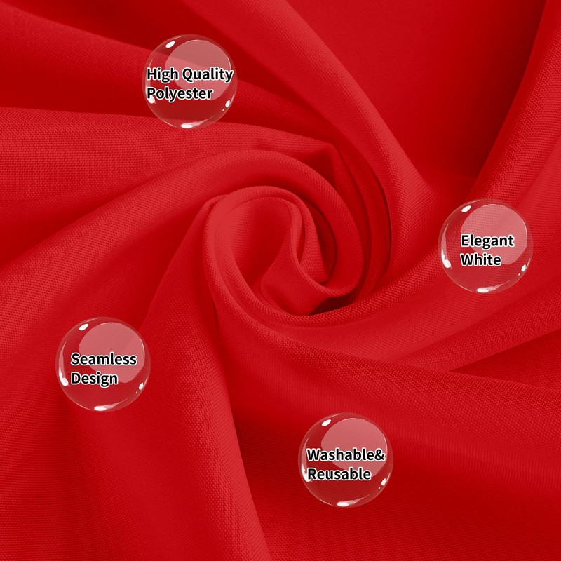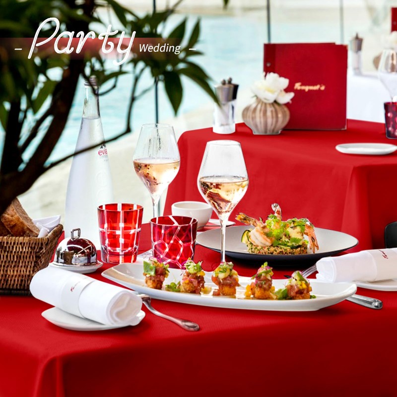 - PREMIUM FARBIC: Red tablecloth is comfortable to touch, not easy to slip, with good drapability, and easy to maintain the whole event, decorate the dining table while protecting your table from scratches, stains and sunlight. Polyester properties make this banquet tablecloth washable, wrinkle free, not fade and can keep good shapes even if multiple washes. A must on the dinner table for important events.