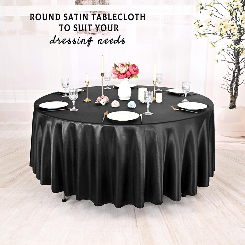 Lumaycens 10 Packs Satin Tablecloth 120 Inch Black Round Table Cloth Silk Tablecloth Smooth Fabric Overlay Satin Table Cover Decoration for Wedding Party Banquet Events