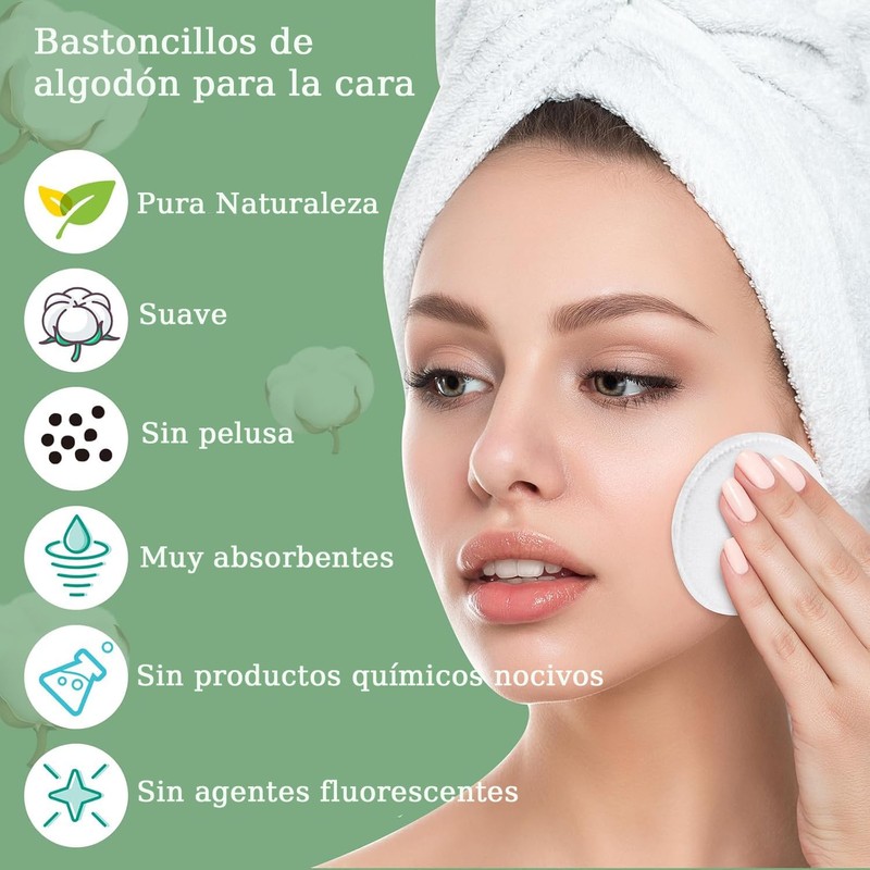 El algodón desmaquillante tiene un diseño exclusivo para eliminar rápida y eficazmente todo tipo de maquillaje, incluidos los cosméticos resistentes al agua y de larga duración. Son fáciles de usar y eliminan el maquillaje con una simple pasada.