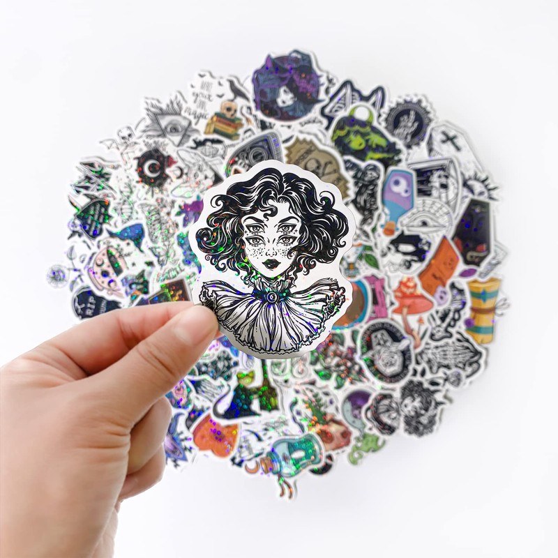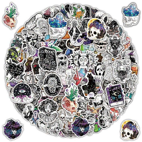 - [El paquete incluye]: Cada paquete de pegatinas incluye 100 piezas de pegatinas con diferentes patrones. Sin entrega aleatoria y sin duplicados, el patrón que se muestra en la imagen principal aparecerá en su paquete. Estas pegatinas de bruja son únicas y vívidas. Traerán más diversión a tu vida.