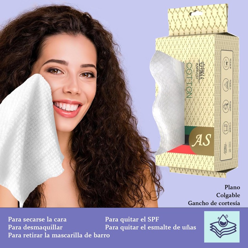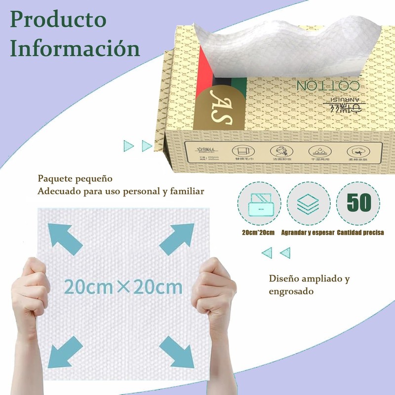 - 【Buen Tamaño y Buen Diseño】Con unas medidas de 20 x 20 CM, el diseño extraíble facilita la extracción eficaz de las toallitas de algodón para la cara. Nuestras toallitas suave y seca se presentan en un práctico paquete de 50 hojas. Perfectas para uso doméstico o sobre la marcha.