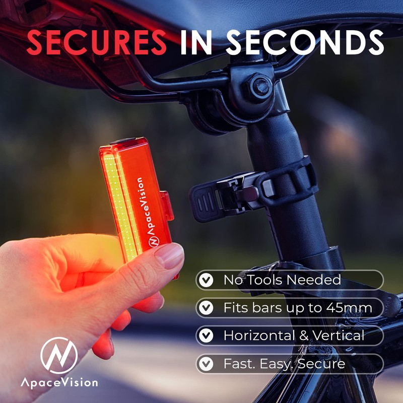 LumeBeam 100 Lumens Bike Tail Light USB Rechargeable - IPX6 Safety LED Bicycle Rear Light for Cycling and Night Riding - 1000 mAh Battery, 6 Lighting Modes, Easy Fit, 270° Visibility - Apace Vision