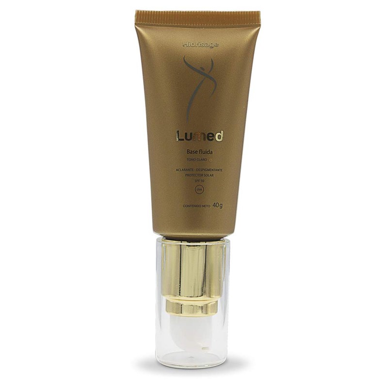 Lumed Base Fluida de Maquillaje, Aclarante y Despigmentante, Protector Solar SPF 50, caja con tubo de 40 gr (Tono Claro)