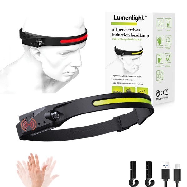 - Versatile Illumination&230°Lighting range: Lumenlight led headlamp headlamp with COB and LED strip floodlight can provide 230° wide angle lighting, The viewing area can be illuminated without moving your head,Red light mode, can be used with help signals, protects eyes and does not attract bugs easily and the right side of the Lumenlight led headlamp is equipped with an ultra-bright LED spotlight that illuminates over a long distance.