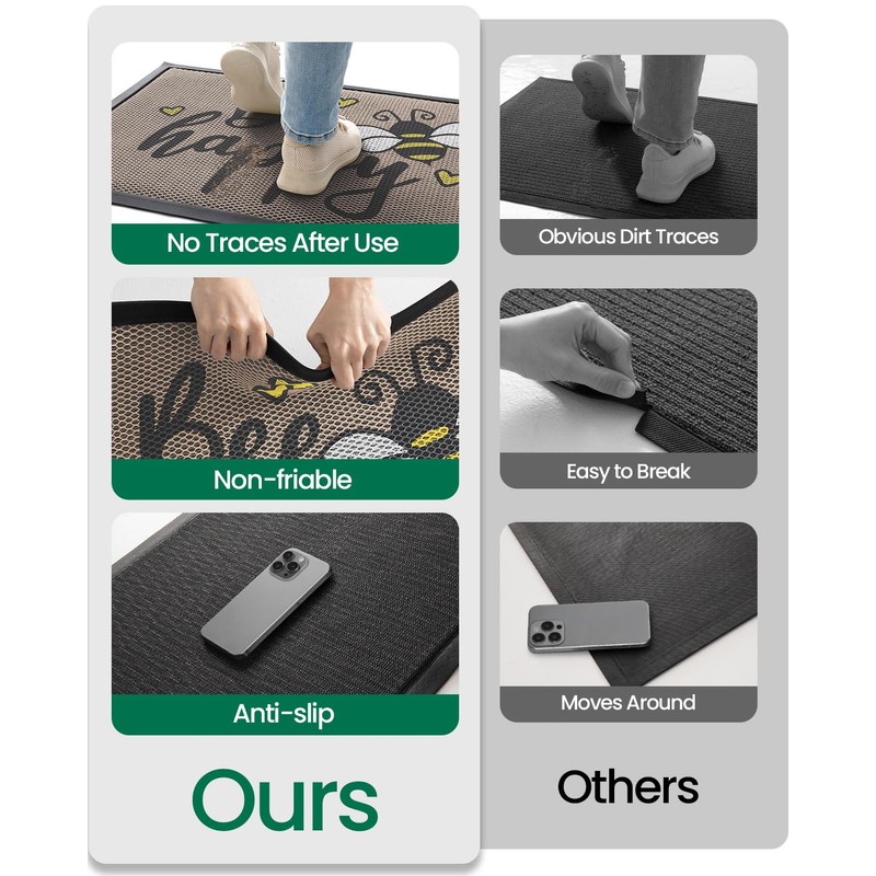 - Dirt Trapper: Superior high-density fibers trap dirt, debris, and moisture instantly, prevents outdoor grime from entering your home. Multi-layer construction with deep grooves grips particles firmly, ideal for high-traffic entryways, pet zones, or muddy boots