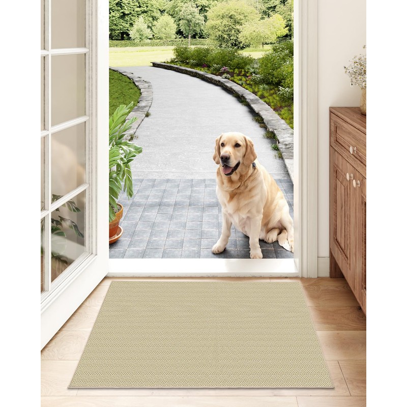 LUMI Ultra Thin Indoor Door Mat for Entrance 36"x56", Non Slip Entryway Mat, Low Profile Doormat, Unique Herringbone Design Carpet for Inside, Patio, Porch, Beige