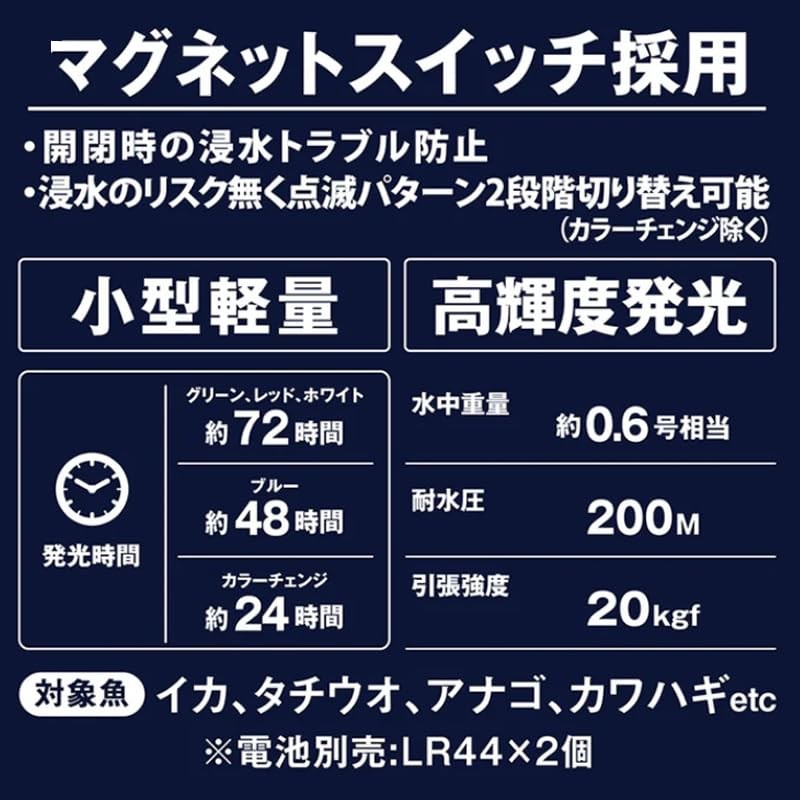 • Water Pressure Resistance: 666.4 ft (200 m), Tensile Strength: 44.1 lbs (20