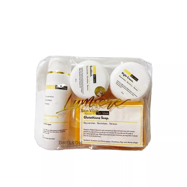 Lumière facial set is proven safe and effective since it is made of premium ingredients esp vitamin E which restores and rejuvenates dehydrated skin and collagen which maintains elasticity of the skin that reduces wrinkles, saggy skin and age spots. 100% Safe because it is made up of all natural and organic ingredients with spf 30. So it does not darken your skin even if you are a little exposed by the sun. No harmful chemicals added. It is an all in one solution for everybody's face concern. It also has glutathione and collagen for anti-aging. It also has buttocks/anti-wrinkle effect.