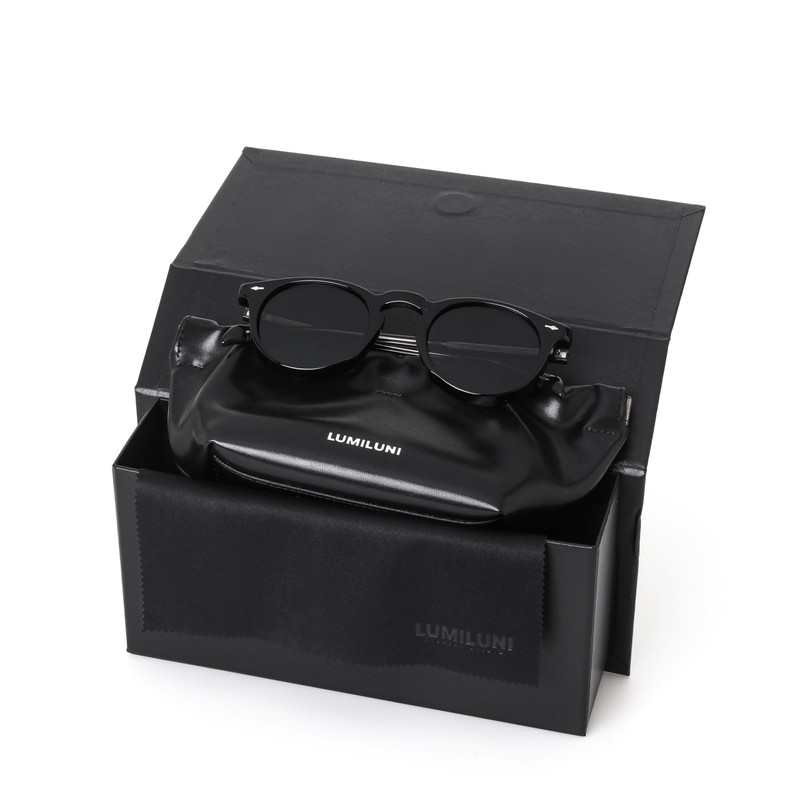 LUMILUNI Korean Style Retro Round Acetate Sunglasses for Men Women (Chic Black)