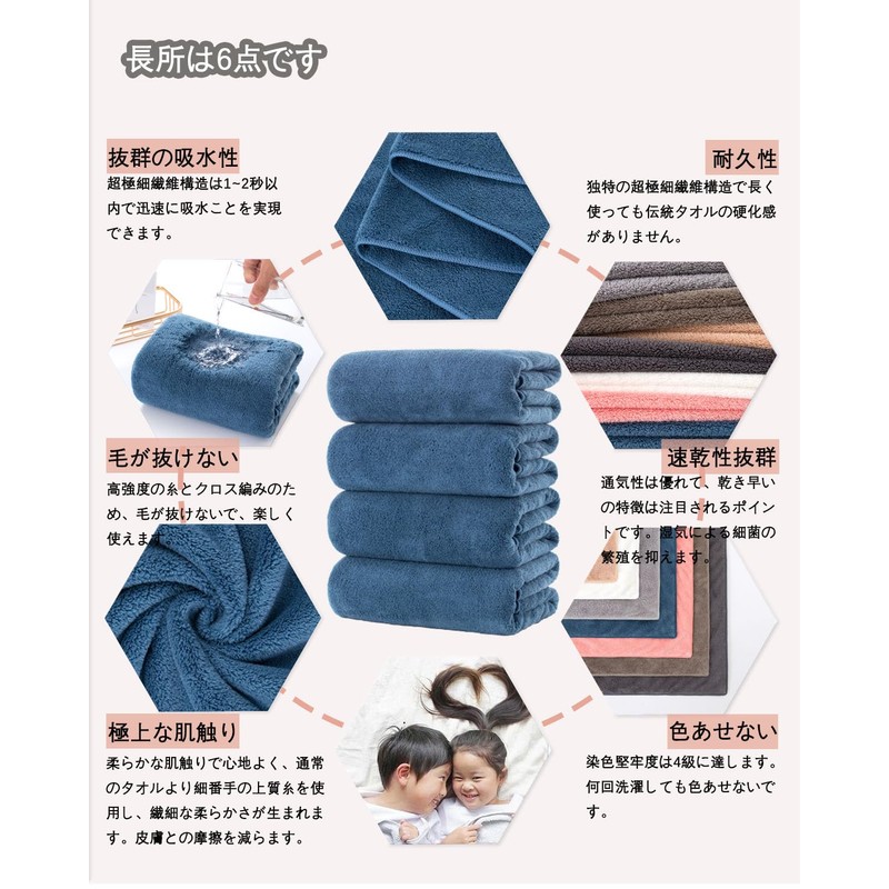 - (Outstanding Absorbency and Quick Drying) It is more absorbent than cotton material. The microfiber surface has countless gaps that can quickly absorb a large amount of moisture in the gap. The material absorbs moisture just by gently applying it to your hair and skin, and it also has a characteristic that makes it easy to remove stains. The air trapped in the gap diffuses moisture, so it is quick drying to reduce bacteria and keep your bath towel healthy