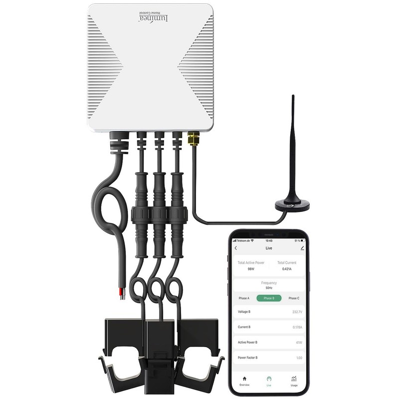 - Real-time monitoring of up to 3 phases Shows total consumption and real-time values Measurement of up to 120 A per phase WLAN integrated for worldwide access via mobile device Free app "ELESION" for real-time values, consumption, evaluation, control Fully compatible with devices with Smart Life and Tuya app