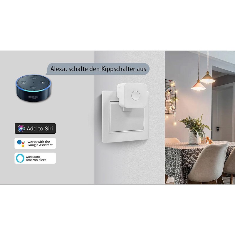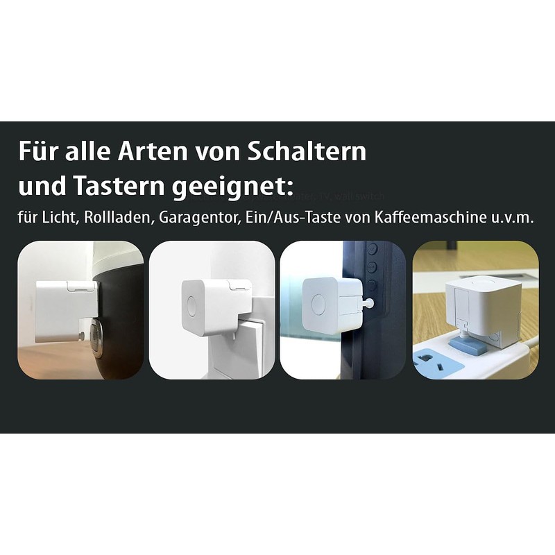 - Switch attachment includes 3 switch adapters, double-sided adhesive pad for the switch attachment and for a switch adapter, battery and German instructions. Switch attachment with app control - integrate any toggle switch or button into your smart home