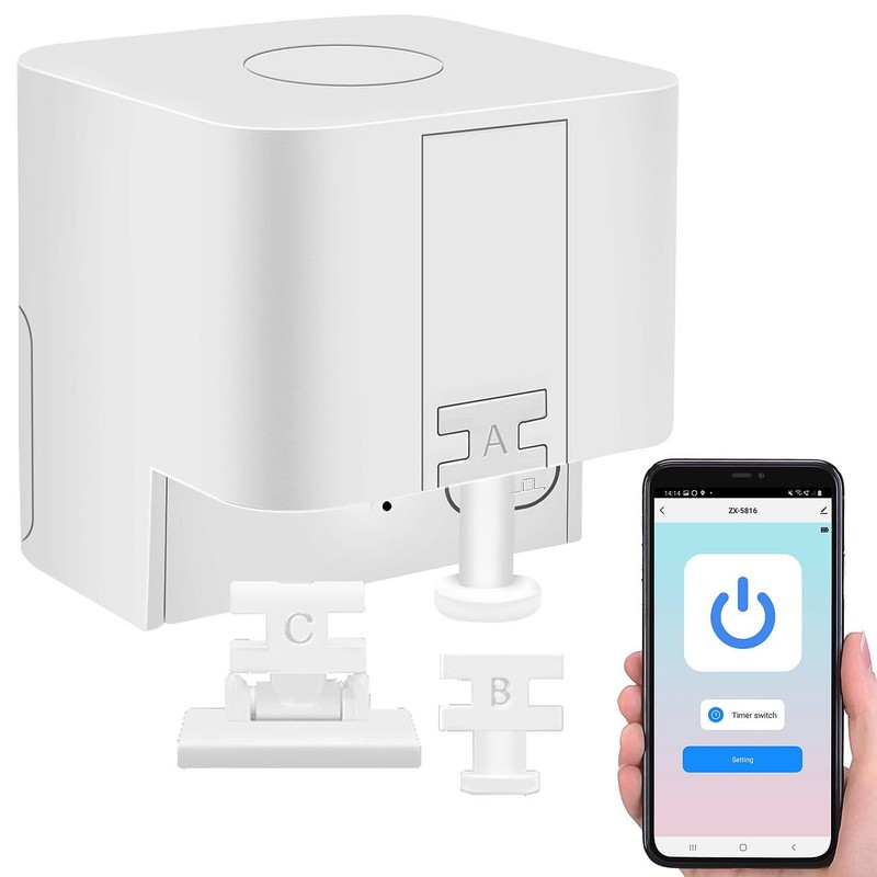Easy to retrofit smart control: simply stick the switch attachment next to your toggle switch or button. The integrated switch adapter acts as a mechanical finger and comes in 3 different variants to perfectly fit your shifting mechanism. It is glued directly to the switch or button. Then just pair the attachment with your mobile device via Bluetooth, and you can control lights, shutters and fans with just one tap on your smartphone display. You can also set up time controls conveniently via app!