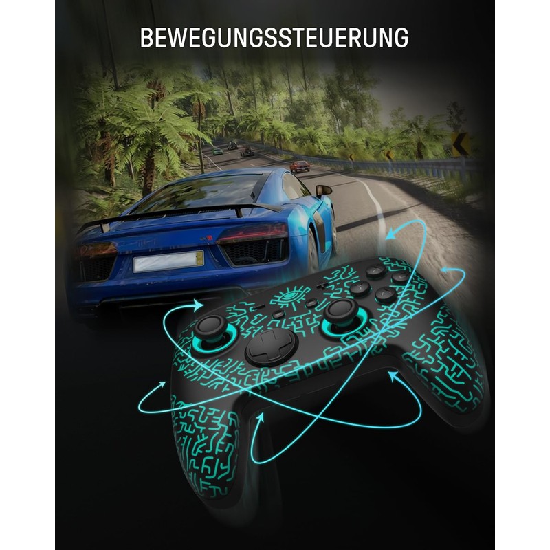 The switch controller with charging station offers comprehensive compatibility for Switch, iOS, PC, Android and Steam Deck. This versatility allows for a seamless gaming experience, regardless of the device, and eliminates restrictions on specific platforms. The wireless controller is adjustable and improves the user experience with hidden lighting that allows you to personalise colours and modes. The multifunctional charging dock synchronises with the light colour of the controller and ensures that it stays fully charged. An outstanding feature is the Hall effect joystick design. Unlike traditional joysticks, the Hall Effect sensors provide precise and sensitive control, which is particularly beneficial in competitive gaming scenarios. This pro controller switch is equipped with numerous functions. Gamers have vibration adjustment, macro settings and a turbo function to perform complex actions effortlessly. By connecting the switch controller wireless to an app, users gain access to advanced customization options. This includes remapping functions, adjusting joystick sensitivity, controlling vibration intensity, setting up macros and adjusting lighting effects. In addition, practical settings such as the auto-off time of the switch controller pro bluetooth can be managed to ensure efficient use.