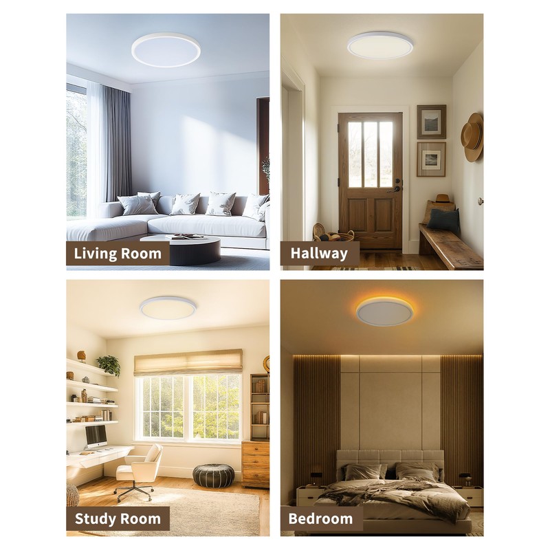 • Ultra-flat design with high-quality material: At only 2.5 cm height, the round living room lamp blends elegantly into any living environment - whether in the living room, hallway, children's room or bedroom. Made of durable PC+PS material - stylish, durable, dustproof and easy to clean.