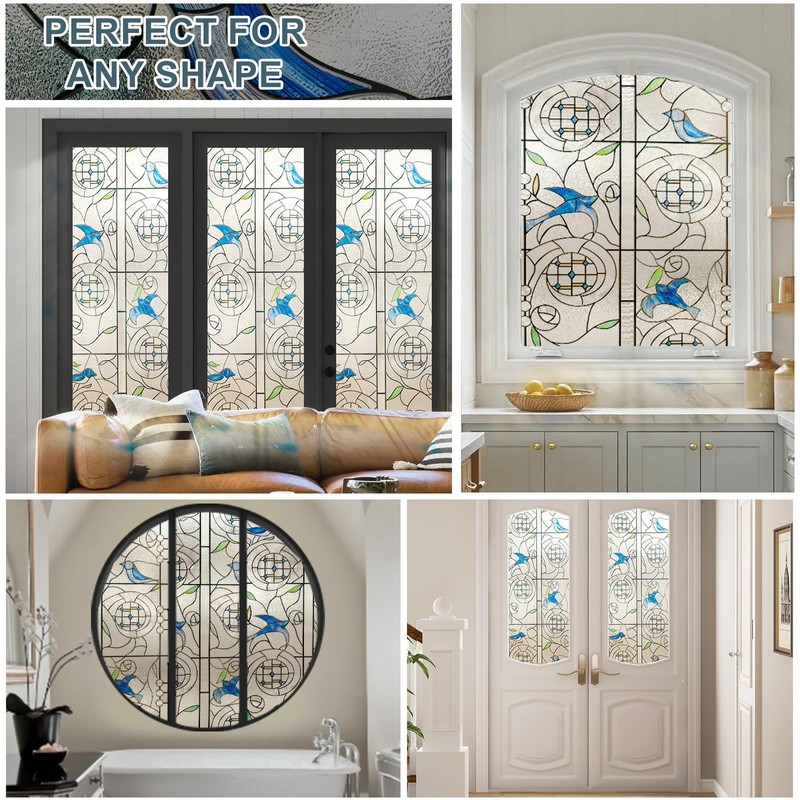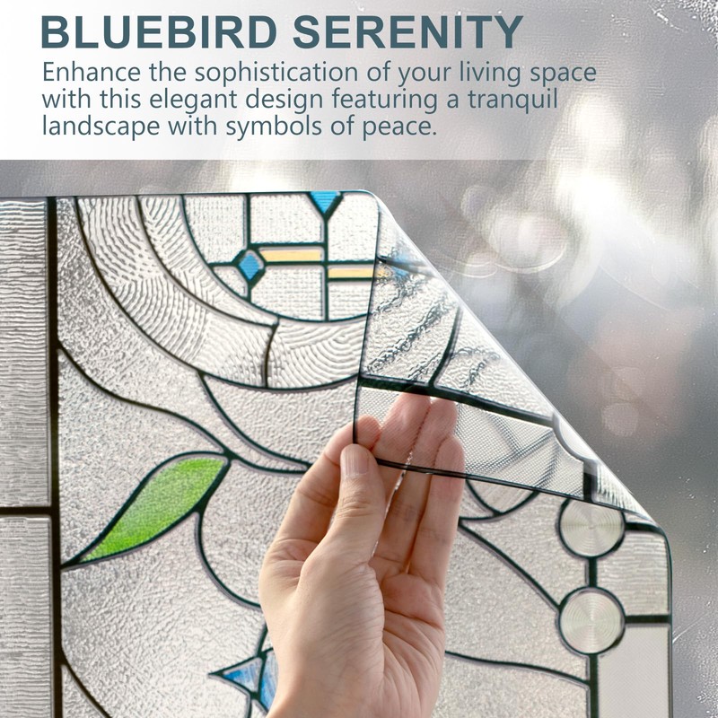 - 【Calming Elegant Design】Bluebird Serenity Stained Glass Window Privacy Film brings the serenity of nature indoors with this elegant design featuring a serene landscape with symbols of peace. Its 3D effect mimics real stained glass and enhances the sophistication of your living space.