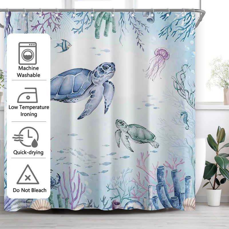Luminora Underwater Sea Turtles Shower Curtain for Bathroom Blue Ocean Tropical Beach Coastal Seaweed Fish Decorations Sets with 12 Hooks Waterproof Polyester 72" x 72"