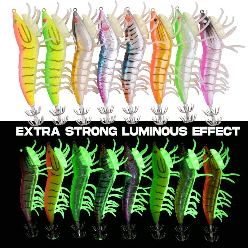 - 【What You Get】8pcs squid jigs well-orangnized in bag. Ideal for fishing squid, octopus, cuttlefish, etc. at night, deep or murky water